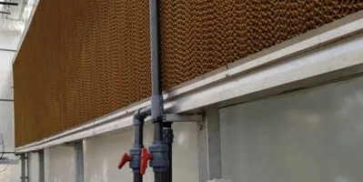 Paneles de evaporación de celulosa y ventiladores extractores. Crean una depresión que fuerza el aire a pasar por el panel húmedo, bajando la temperatura. Incluye sistema de recirculación de agua.